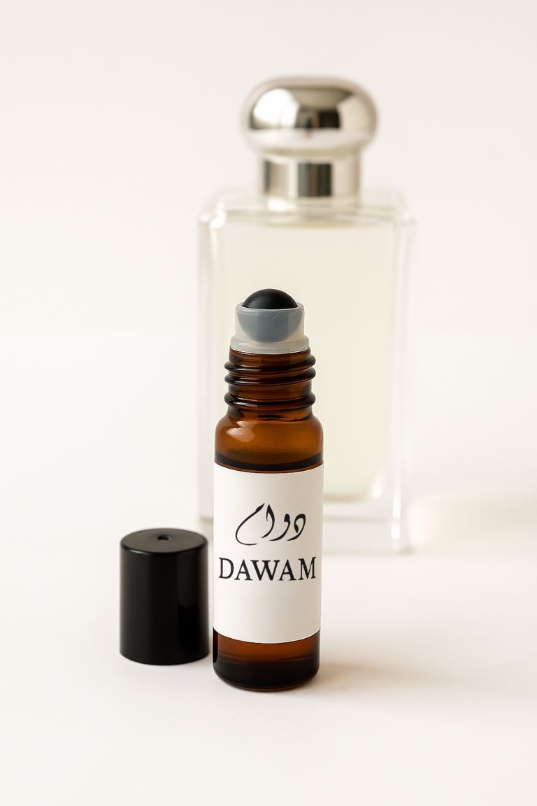 The core scent itself — the concentrated aromatic blend that gives each Dawam perfume its character.