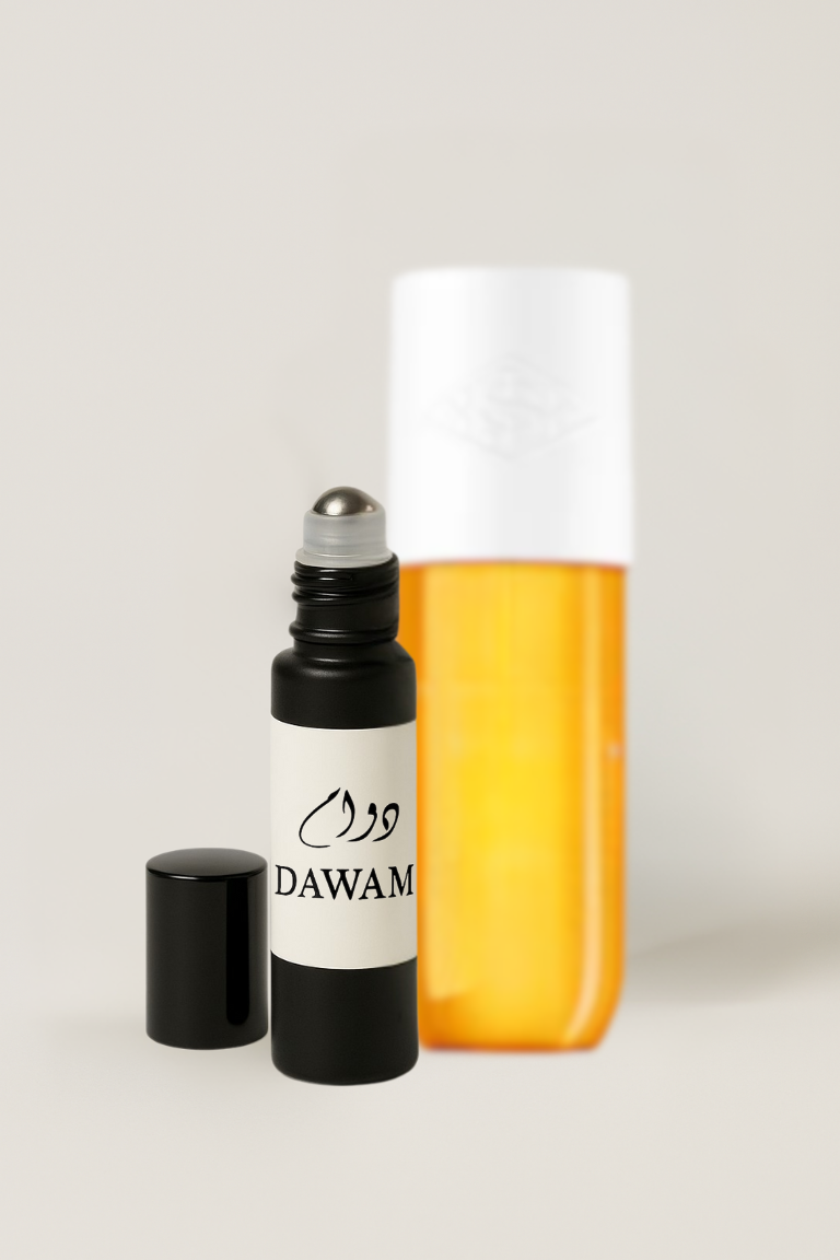 The core scent itself — the concentrated aromatic blend that gives each Dawam perfume its character.