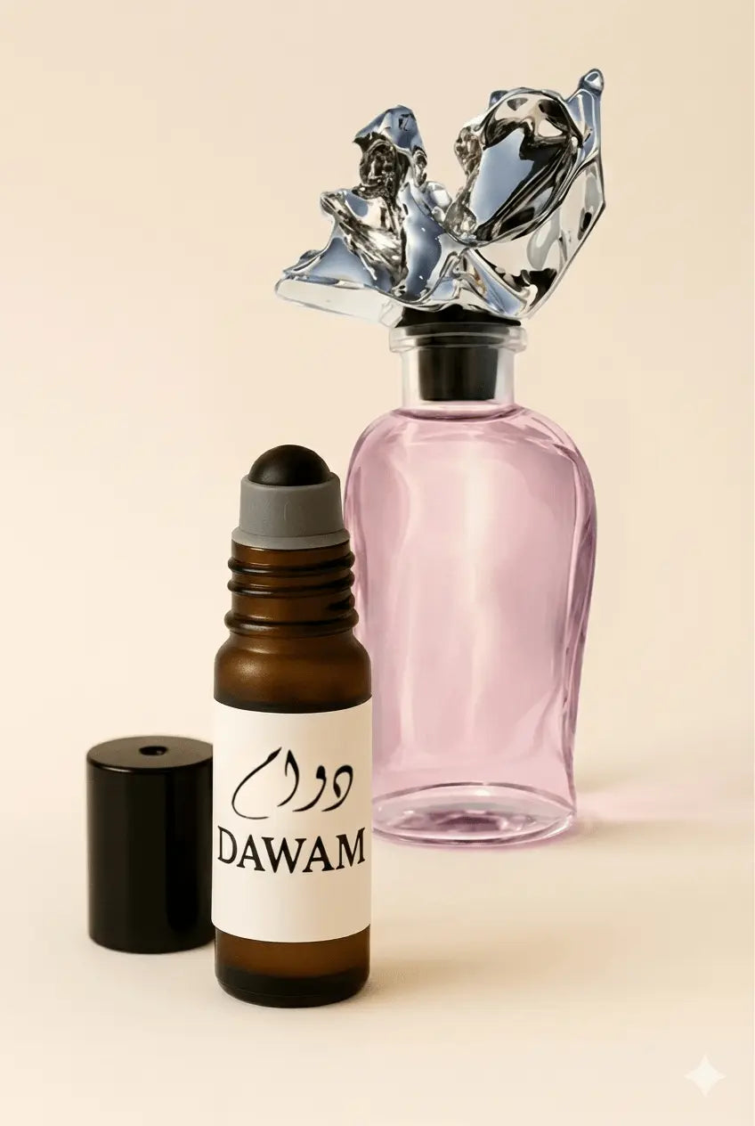 The core scent itself — the concentrated aromatic blend that gives each Dawam perfume its character.
